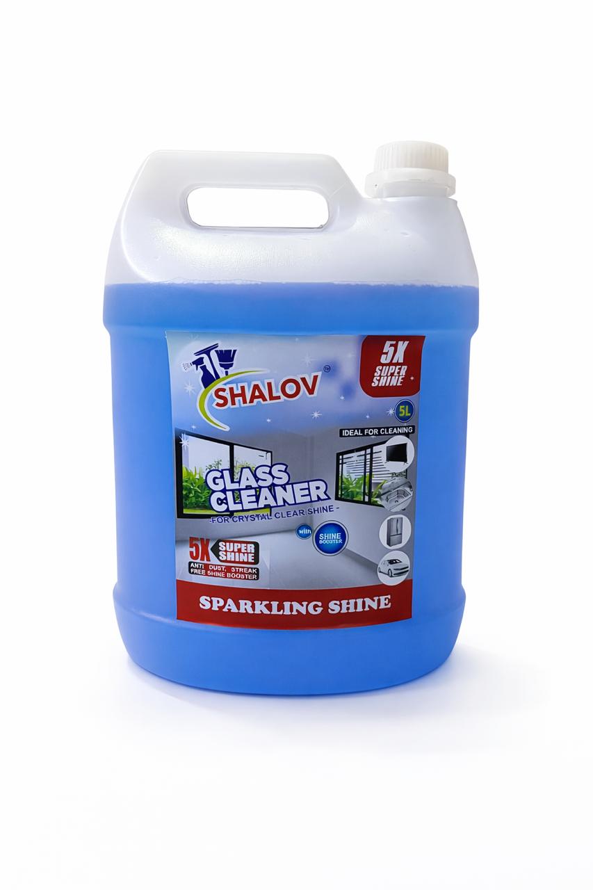SHALOV Glass Cleaner 5β€―L is a ready-to-use cleaning solution designed for large-scale glass cleaning. Its streak-free formula gives windows, mirrors, and other glass surfaces a sparkling shine. Quick-drying and easy to use, it’s suitable for homes, offices, shops, and commercial spaces.